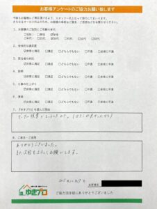 大切に長く暮らしたいと思います。また家のメンテナンスの際にご相談できるとうれしいです。ありがとうございました。